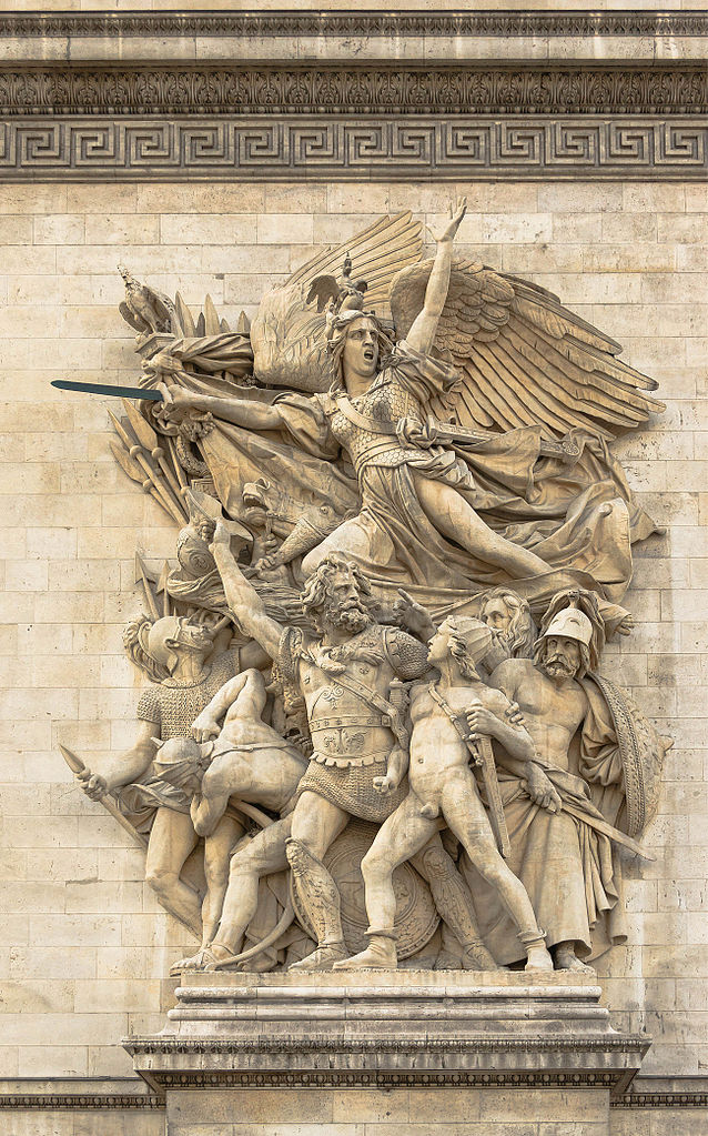 Spośród monumentalnych reliefów szczególną sławę zyskała Marsylianka autorstwa Françoisa Rude’a (1784-1855), wykonana w latach 1833-1835, znana również pod tytułem Wymarsz ochotników 1792 roku. Oba tytuły niejako się uzupełniają. Marsylianka odnosi się oczywiście do hymnu Francji, którego geneza sięga wydarzeń tego właśnie czasu. Słowa i muzykę pieśni stworzył Claude Joseph Rouget de Lisle, inspirując się tym, co zobaczył 25 kwietnia 1792 roku. Wtedy do boju z Austrią wyruszyła rewolucyjna Armia Renu. Ten właśnie moment Rewolucji Francuskiej ukazał na Łuku Triumfalnym François Rude. Dodajmy, że pieśń szybko zdobyła popularność, a z racji na fakt, że jako pierwsi śpiewali ją żołnierze z Marsylii, zyskała miano Marsylianki. W 1795 roku została ogłoszona hymnem państwowym.