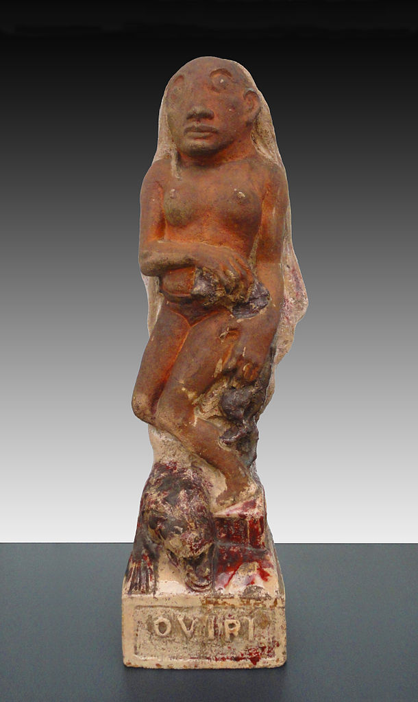 Stworzone przez Gaugina wyobrażenie Oviri jest przedstawieniem imaginowanym, nieopartym na żadnym wiarygodnym tahitańskim przekazie źródłowym, ani nie odnoszącym się do rodzimej tradycji ikonograficznej. Gdy artysta przebywał na Tahiti w 1. połowie lat 90., rdzenne mity, legendy i wierzenia były już dawno wyparte ze świadomości mieszkańców wyspy. Podobnie zniszczeniu uległy także artefakty. Gaugin sięgnął po motywy ze swojego archiwum obrazów, kolekcji rycin i fotografii, która towarzyszyła mu w wyprawie na Polinezję. Badacze wskazują, że pracując nad postacią bóstwa mógł inspirować się zmumifikowanymi czaszkami wodzów plemion zamieszkujących Markizy (wyspy Polinezji Francuskiej), przedstawieniami bóstw wyobrażonych na reliefach stanowiących dekorację architektoniczną buddyjskiej świątyni w Barabudur na Jawie, reliefami ze świątyń asyryjskich oraz mumiami z terenu królestwa Majapahit (dzisiejsza Indonezja i Malezja). Artysta, sięgając po różne wyobrażenia, stworzył wizję wyidealizowaną, romantyczną, odpowiadającą jego widzeniu Tahiti.