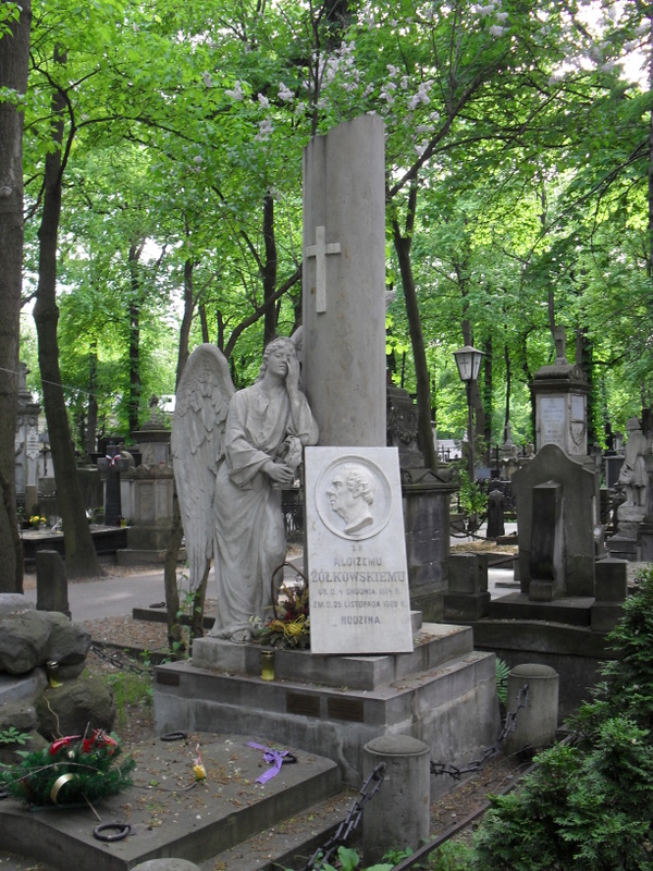 Cmentarz Powązkowski, na którym spoczywa Alojzy Żółkowski-syn, to swoiste, znajdujące się na wolnym powietrzu, muzeum rzeźby polskiej 19. i 20. wieku. Pomniki powązkowskie nierzadko wychodziły spod dłuta dobrych, wykształconych poza granicami artystów. Ta sytuacja nie jest bynajmniej rezultatem ogromnej zamożności polskiego, warszawskiego, społeczeństwa, które stać było na zatrudnienie cenionego twórcy. Wprost przeciwnie, to efekt kondycji rzeźby i społecznego statusu rzeźbiarzy na ziemiach polskich w 19. stuleciu. Przypomnijmy – ziemie polskie były wówczas pod zaborami, polska państwowość jako taka nie istniała. Jak powiedział jeden z rzeźbiarzy: „To zły czas dla rzeźby”. Rzeźby, która była sztuką wymagającą dużych nakładów finansowych. Na takie stać było jedynie zamożnych fundatorów i silnego mecenasa, jakim od zawsze było państwo. Wielkie pomniki miejskie, wpisane w pejzaż architektoniczny miast europejskich, na ziemiach polskich w zasadzie nie zaistniały. Dopiero w latach 80., w Galicji cieszącej się dużą autonomią, ogłoszono konkurs na pomnik Adama Mickiewicza w Krakowie. Wzięli w nim udział wszyscy wybitni twórcy.