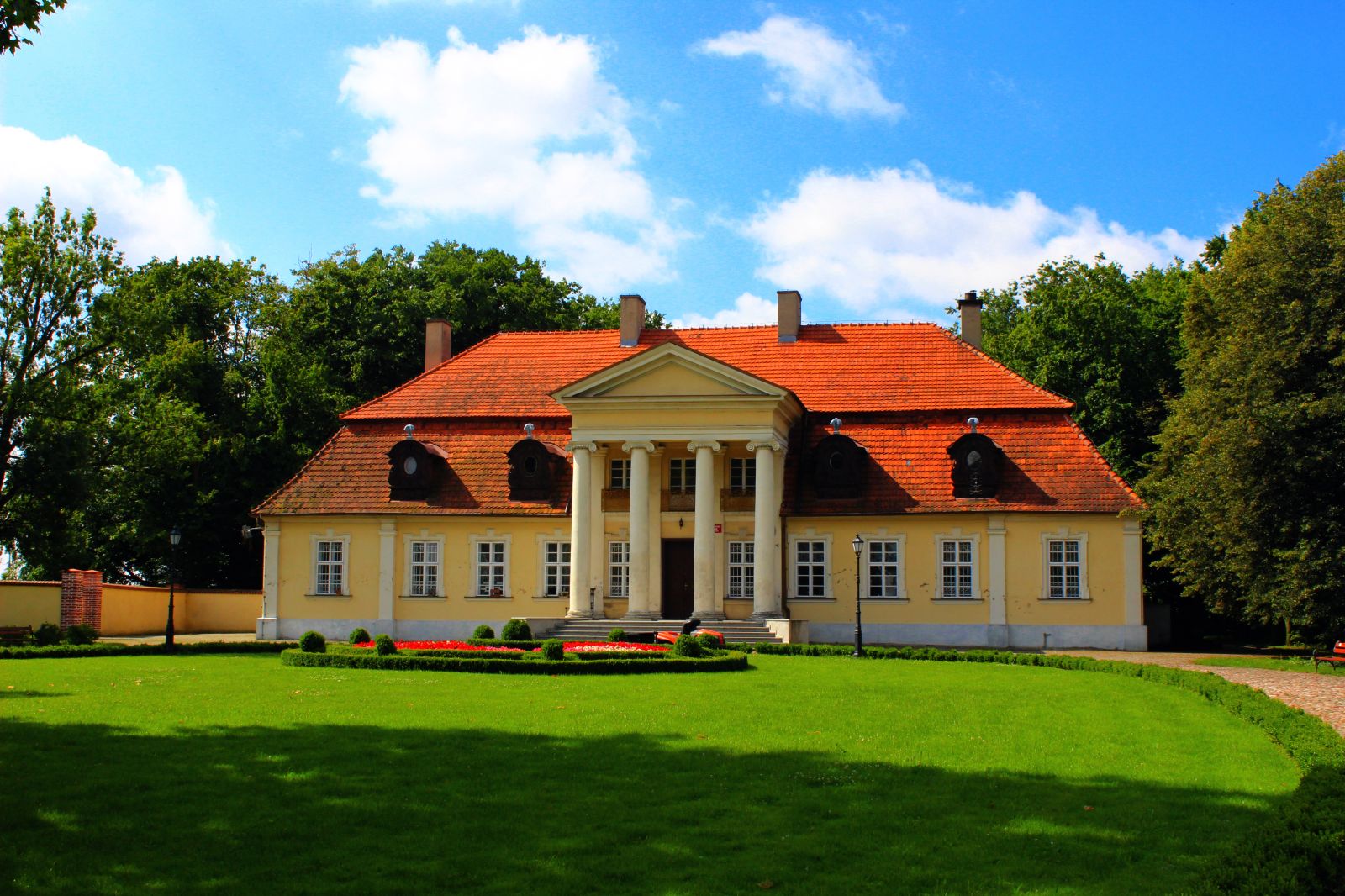 Przebudowa tego obiektu miała miejsce w latach 1906-1907 z wykorzystaniem wcześniejszych partii budowli. Dwór jest murowany, parterowy, jedynie w środkowej części zaznaczono wyższą kondygnację. Jego główna bryła wznosi się na rzucie prostokąta. Poza jego obrys, symetrycznie na osi budowli wystają dwa portyki kolumnowe umieszczone od strony podjazdu i ogrodu. Bryłę wieńczy wysoki dach łamany kryty pomarańczową dachówką, którego rozmiary niemal przytłaczają budynek. Każdy z trójkątnie zwieńczonych portyków dwukrotnie przerasta wysokość ścian dworu, sięgając do połowy wysokości dachów. Obie elewacje - frontowa i ogrodowa zostały potraktowane podobnie. Od strony wjazdu widoczna jest parterowa bryła budynku wzniesiona na niewielkim cokole. Rozdziela ją w środku wysoki portyk kolumnowy. Tworzą go cztery, jońskie kolumny dźwigające trójkątny fronton, ustawione na niewielkim podwyższeniu, do którego prowadzą stopnie schodów. Za kolumnami, na osi znajduje się główne wejście i okna drugiej kondygnacji. Po bokach portyku ciągną się ściany jednokondygnacyjnej budowli, w których rytmicznie rozmieszczono po cztery, prostokątne okna. Budowlę przykrywa wysoki dach łamany, którego uskok wyznacza połowę jego wysokości. Połacie o mniejszym nachyleniu zajmują dolna część. Na ich poziomie środkową część zajmuje zwieńczenie portyku, zaś po bokach, ponad ścianami bocznymi umieszczono po dwie, niewielkie lukarny z owalnymi oknami (element architektoniczny umieszczony w połaci dachu z niewielką ścianką pionową, z oknem doświetlającym strych). Powyżej, ponad całością ciągnie się druga połać dachu o większym nachyleniu. Całość budynku wieńczą rytmicznie rozmieszczone cztery kominy. W analogiczny sposób została potraktowana elewacja ogrodowa, w której w odmienny sposób potraktowano jedynie centralnie umieszczony portyk. Od wjazdu jońskie kolumny tworzą klasyczną, rytmicznie rozmieszczoną kolumnadę, natomiast od strony ogrody architekt je rozsunął grupują w umieszczone po bokach pary. Zrezygnował  też z ciągłego, klasycznego belkowania usuwając je z środkowej części. Jego krótkie odcinki pozostały jedynie o bokach,  ponad parami kolumn. W wyniku tego zabiegu przerwano również podstawę trójkątnego frontonu. Uzyskane w ten sposób duże płaszczyzny ścian w środku elewacji ogrodowej architekt wypełnił przeszklonym prostokątnym wyjściem do ogrodu i umieszczonym powyżej, dużym oknem z balkonem.